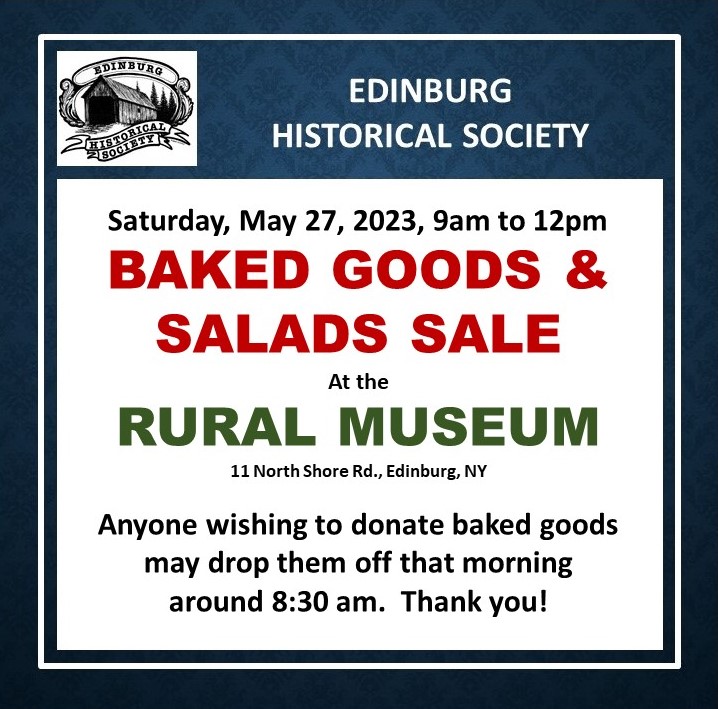 BAKED GOODS & SALADS SALE-5/27-9am to 12pm at the RURAL MUSEUM – Bakers Welcome to Donate!