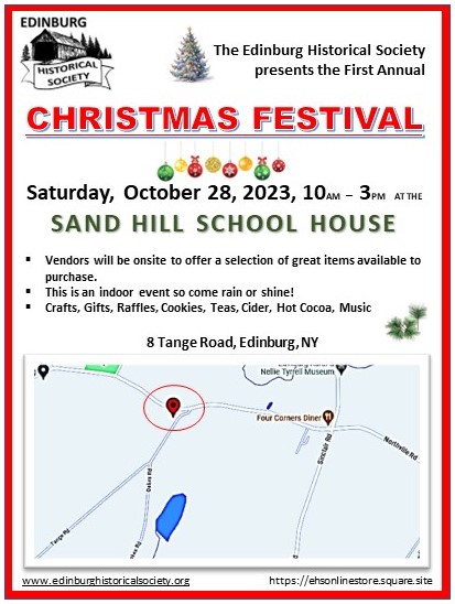 October 16, 2023 by linda7325 Our First Annual Christmas Festival – Saturday, Oct. 28 – 10am to 3pm This is an indoor event featuring craft vendors, cookies, hot beverages and good cheer!