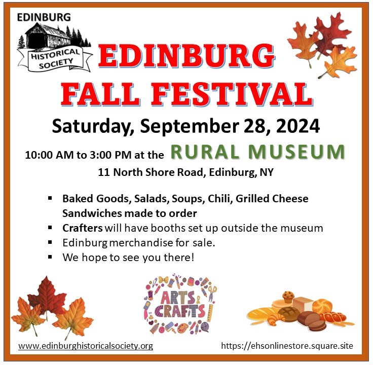 JOIN US FOR THE 2024 EDINBURG FALL FESTIVAL – Saturday, Sept. 28, 2024, 10am – 3pm at the Rural Museum